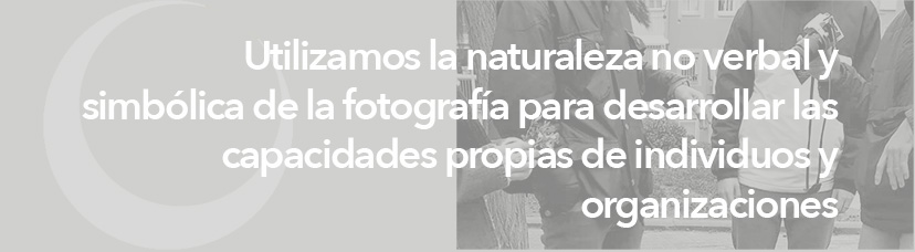 Conocedores del potencial de la imagen para desencadenar nuevas perspectivas y asociaciones, utilizamos la naturaleza no verbal y simbólica de la fotografía para desarrollar las capacidades propias de individuos y organizaciones, promoviendo la consecución de cambios en sus propias realidades de forma creativa y crítica.